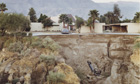 By the 1970s the west had become an idea to be parodied, as Cindy Sherman proved in her staged photographs of B-movie starlets, and Richard Prince showed so successfully in his re-photographed images of Marlboro man. Joel Sternfeld's colour landscapes from the late 1970s and early 1980s still have something of the sublime in their far horizons and painterly skies, but their real subjects are more mundane, and more sinister, and closer to home. In his photograph of Rancho Mirage, California, a flash flood has demolished an entire hillside taking houses, cars, and maybe people with it. At Lake Oswego, Oregon, a deserted street of tract houses under a glowering sky suggests the sort of gloomy mediocrity that makes people fall apart. The west lends itself easily to fiction, thanks to its frequent appearances in cinema, music, literature and photographs.