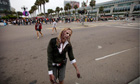 Paul, a road movie about two nerds who meet a foul-mouthed ET-lookalike alien, was greeted almost as enthusiastically; the film's writing/acting team, Simon Pegg and Nick Frost, got the sort of welcome usually reserved for local boys made good. They had earned the crowd's affection many times over from Shaun of the Dead and Hot Fuzz, but took out an extra insurance policy by setting part of Paul at Comic-Con itself. The sound of the audience whooping and cheering the mirror-image of their world on screen was half-touching, half-solipsistic. Frost pointed out that the convention centre in the film is a replica built in New Mexico. "We wanted to shoot here last year," he said, "but in the words of the San Diego fire marshal: 'No fucking way.'"