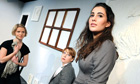 Elisabeth Dahl (The Wife), Tilly Fortune (The Secretary) and Lara Lemon (The Student) in Three Women at the Jermyn Street theatre. Photograph: Tristram Kenton Photograph: Tristram Kenton