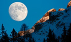 An almost full moon rises behind the Tijerflue mountain in Arosa, Switzerland. Photograph: Alessandro Della Bella/EPA Photograph: Alessandro Della Bella/EPA