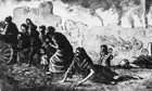 Peake's biographer, Peter Winnington, believes the artist must have been inspired by Goya's Disasters of War etchings, but wrote: "There is something disturbing about the idea that these pictures were drawn entirely from Mervyn's imagination, as he sat in the relative comfort of his Suffolk cottage, long before he had seen anything of the horrors of war."He would go on to become a more conventional war artist, and produced drawings in the aftermath of the war, including from Bergen-Belsen concentration camp, for the magazine the Leader.