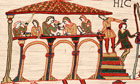 Harold II depicted feasting with companions on the Bayeux Tapestry.