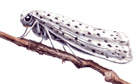 There are eight varieties of ermine moth that live in the UK, with the bird-cherry, with five rows of black dots on the forewing being the most common, particularly in the north. Some adults are so similar that the only way to identify them is by their caterpillars' food plant – in this case the native and common bird-cherry tree. It is particularly common in this park because the municipality had planted 40 of them as ornamental trees.