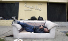 A homeless man sleeps on a sofa on Sunset Boulevard in Hollywood. Photograph: Hector Mata/AFP/Getty Images Photograph: Hector Mata/AFP/GETTYIMAGES