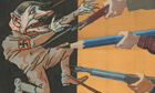 Because of equipment shortages, stencils were used rather than lithographs, producing a striking effect. In the stencilling process, paint is applied to the paper and sits on the surface, rather than soaking in as it does in printing. This dedicated group took stencilling to a new level: one portrayal of Hitler used 25 colours and more than 100 stencils. Some of the country's best poets, such as Marshak, were called back from evacuation to keep producing copy for the posters, many of which drew on Stalin's wartime speeches.