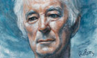 After our meeting, Seamus Heaney sent me a copy of the book Stepping Stones, a collection of detailed interviews he gave Dennis O'Driscoll. In the inscription he writes that he admired the work I did when 'faced with an older face'. The letter that accompanied this gift described his portrait as 'frank and firmly decided', and I do try to portray the sitter as I see them, and not 'do an injury to them' (a description Francis Bacon once applied to his work). In this portrait I drew on Seamus Heaney's own words (from his 1995 Nobel prize address), and chose to portray his face beneath a series of stepping stones. Photograph: Zsuzsi Roboz, courtesy Messum's