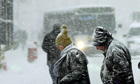 Pedestrians march through the snow in the city. Photograph: Henny Ray Abrams/EPA Photograph: Henny Ray Abrams/EPA