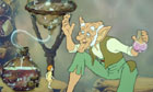 We wanted the island where the giants live to look quite alien and disturbing. This was before computer-based animation, so we had to think on our feet. For the sky, we got a fish tank and bled paint in and then filmed it with a 35mm, overcranked camera. The result was a Spielberg-style wash of boiling clouds that we could put into the sky areas. Sometimes we would project the clouds up from the art work or down on to them, to give the illusion that the sky was moving. When I walked into the pet shop to buy the tank they asked: "What are you putting in it?" We said: "Ink." They didn't really get it.