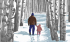 By Michala Gyetvai: 'Threads and fibres stitched on an old woolen blanket. Two trees which huddle together to keep warm'