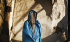 Out of this vast space and its vexed geopolitical history Drake has made a visually stunning book that eschews traditional documentary for an altogether more impressionistic point of view in which mystery and suggestion are as important in evoking a sense of place as straightforward landscapes or portraits. Her use of colour is central to all this, and her palette is rich and atmospheric. Dishes of food arranged on a patterned tablecloth seem like a kind of landscape, while an actual landscape with people, glimpsed though a tree, looks like it has been arranged just for her camera. She photographs the vast and the intimate with the same attentiveness, whether a white horse and two faraway human figures in a snow-covered valley or a bag of heroin hidden inside a Nescafé packet bound with string that was seized at a border post. History, recent and ancient, looms large here, from the beheaded Soviet statues that now dot the region like warped memories to the glimpses of shamans and fortune tellers at their work – traces of older folk traditions that still linger, relatively unchanged, throughout rural central Asia despite all that has happened there.