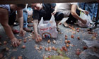 People crouch to collect leftover vegetables in Athens: ‘scarcity of all kinds remodels patterns of thinking’. Photograph: Bloomberg/Getty Images Photograph: Bloomberg/Getty Images
