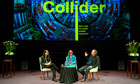 Nima Arkani-Hamed, Martha Kearney and Ian McEwan at London's Science Museum Photograph: Jennie Hills/Science Museum Photograph: Jennie Hills/Science Museum