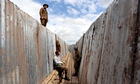 Actors patrol the trench dug near Usk that audiences will experience in Mametz. Photograph: Dimitris Legakis for the Guardian Photograph: Dimitris Legakis/Guardian