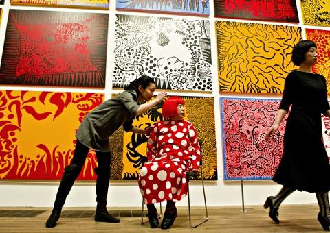Thornton meets some interesting artists and her direction can be playful. Yayoi Kusama and Hirst appear one after the other. Both paint dots: “Your average polka dot tends to be identical to its mates, lined up mindlessly in equidistant rows.” Kusama, who is 85 and lives in a mental hospital in Japan, does it obsessionally, Hirst as an income stream. But looking at art tends to happen when the artist is not present. Thornton’s fact-gathering style is busy and journalistic, but the central drama, the shock in the head, of encountering artworks that properly move you, gets lost in the mass of indiscriminate detail. She notes what artists have for lunch – “shrimp taquitos and guacamole” at Francis Alÿs’s – what they wear and what kind of stuff they have. Of Rashid Johnson: “Margiela sneakers signal his success to people who know their fashion brands.” At Gabriel Orozco’s studio “we admire some ‘serious’ pre‑modernist chairs, made in Mexico from tropical wood.”