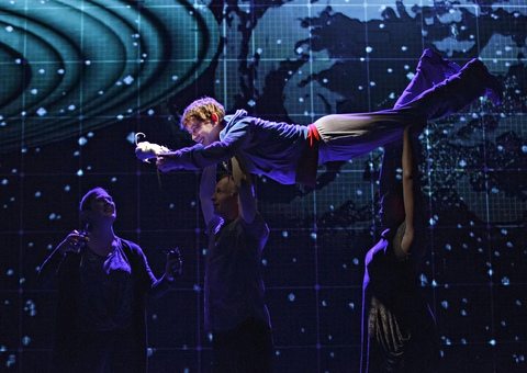 Stephens and director Marianne Elliott handle the novel with care, and a little distrust. The set is cold and clinical, a grid that has space on one axis and time on the other reflecting Christopher’s obsession with math. They’ve opted for a story-theatre form, in which Christopher recounts the details of the case – he’s written them down in a book, which his life-skills teacher, Siobhan, has turned into a play – as actors seated at the margins of the stage step forward to assume various roles. Christopher isn’t a fan of plays (“because it is pretending that something is real when it is not really real at all”), but this approach preserves his idiosyncratic voice while also keeping the material at some distance, playing down occasional tweeness.