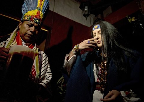 A shaman starting a yagé ceremony in Colombia. Photograph: Eitan Abramovich/AFP/Getty Images Photograph: Eitan Abramovich/AFP/Getty Images