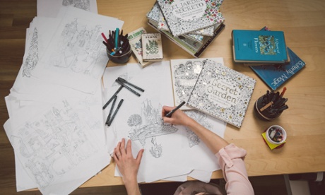 Illustrator Johanna Basford with her Amazon bestselling colouring book, Secret Garden. Photograph: Johanna Basford and Lawrence King